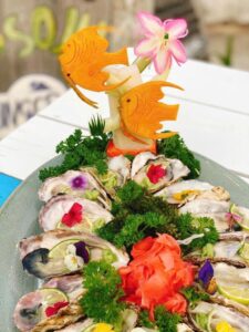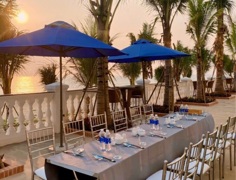 Bạn có thể chọn vị trí ăn uống bên bãi biển ngắm hoàng hôn hoặc tại Phòng ăn trang nhã , riêng biệt, được trang bị TV 75 inch và hệ thống karaoke chuyên nghiệp sẵn sàng cho những buổi tiệc vui vẽ bên bạn bè, gia đình và đối tác.