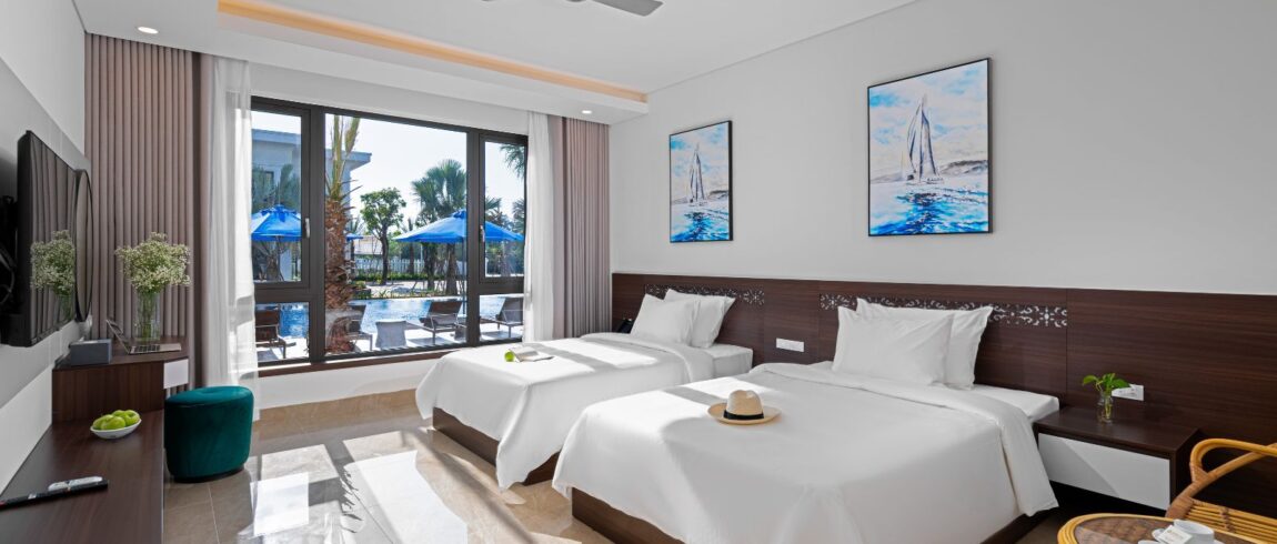 Phòng Đơn 2 giường 2 người view hồ bơi (2 giường 1.4m)